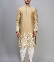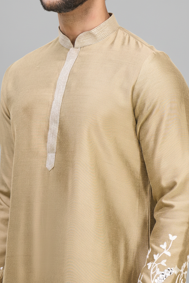 Fawn embroidered men’s silk kurta patiala set
