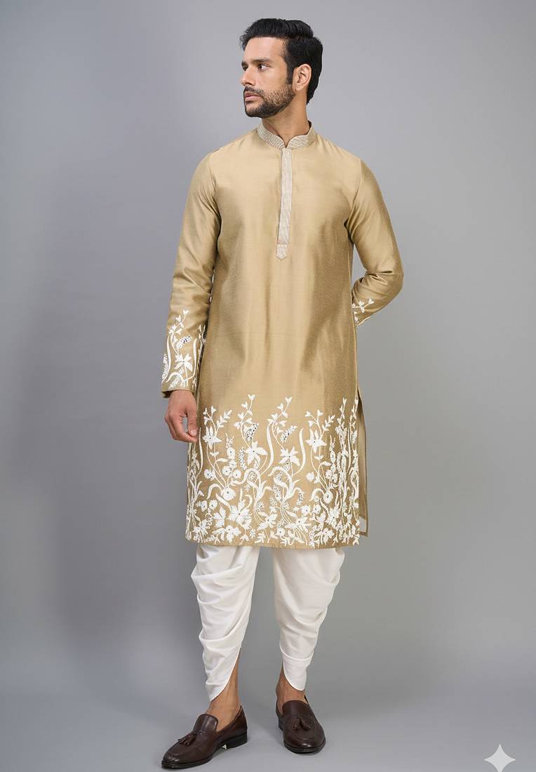 | Product Name | Fawn Embroidered Men’s Silk Kurta Patiala Set | |