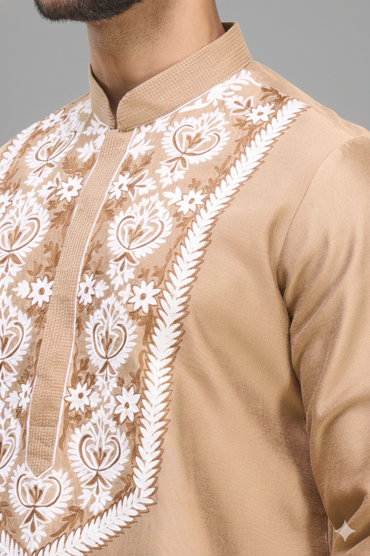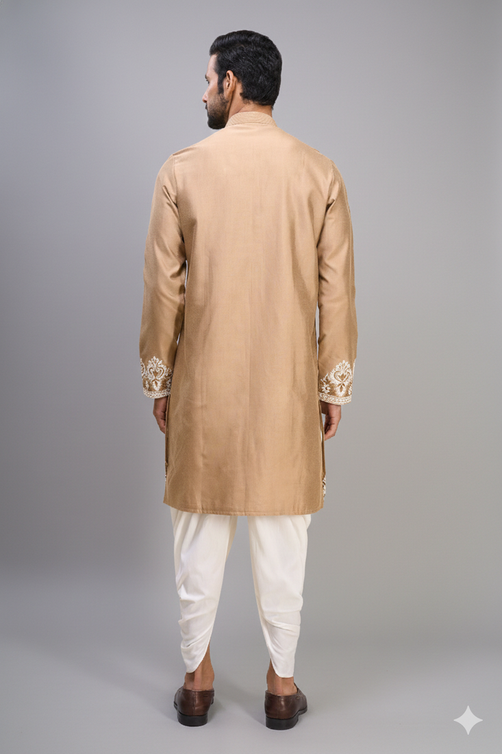 | Product Name | Beige Embroidered Silk Men’s Kurta Patiala Set | |