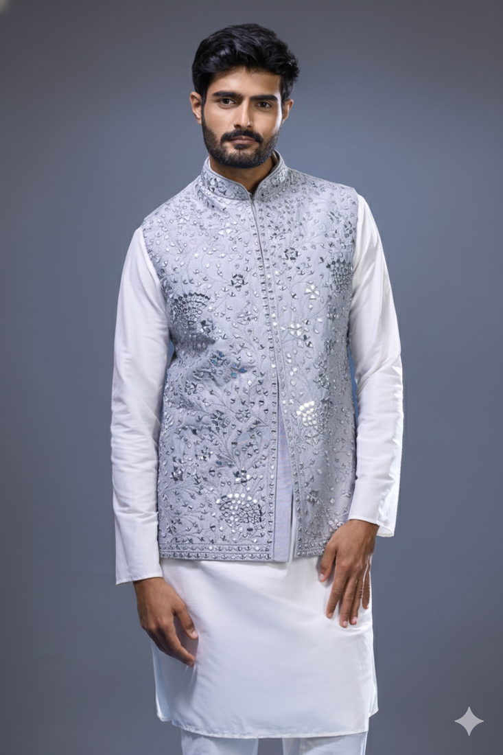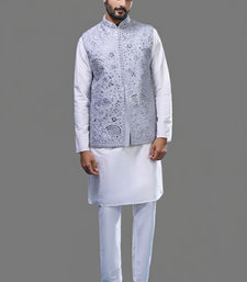 | Product Name | Grey Embroidered Mirror Work Silk Nehru Jacket Kurta Set | |