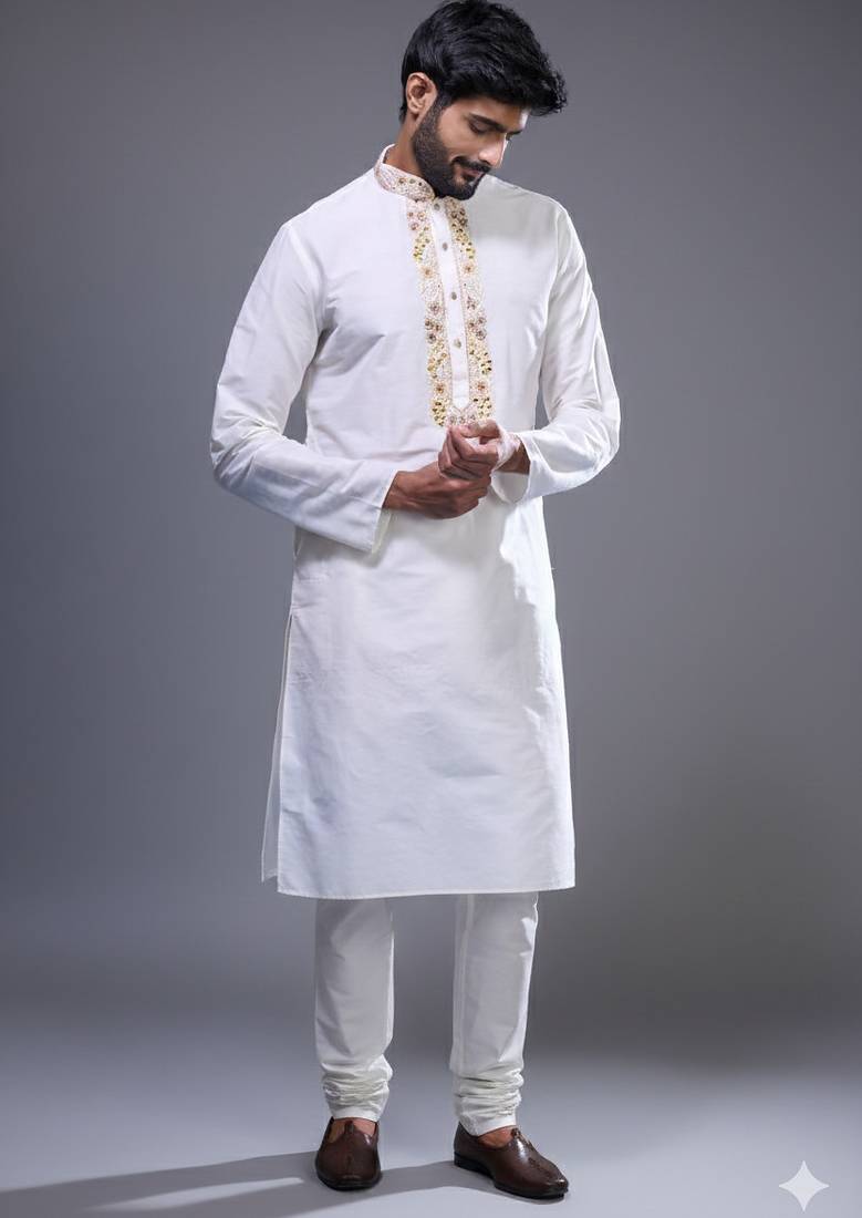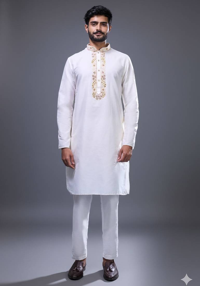 | Product Name | Off White Embroidered Kurta Pant Set For Men | |