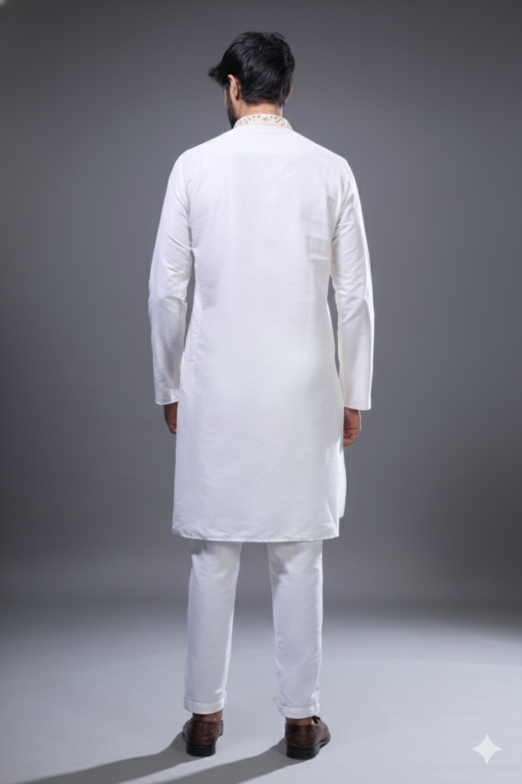 | Product Description | Elevate Your Ethnic Wardrobe With This Off White Kurta Pant Set For Men, Crafted For A Clean And Sophisticated Look. The Kurta Features Elegant Embroidery Along The Placket And Collar, Adding A Refined Touch Of Detail Without Overpowering The Design. Paired With A Straight Fit Pant, This Ensemble Offers A Sleek And Modern Silhouette While Retaining Its Traditional Charm. Made From High Quality Fabric, It Ensures A Comfortable And Breathable Feel, Perfect For Long Hours Of Wear. The Timeless Off White Shade Enhances Its Versatility, Making It Suitable For Weddings, Festive Occasions, And Cultural Events. Designed For Effortless Styling And Understated Elegance, This Kurta Set Is Ideal For Men Who Appreciate Minimal Yet Impactful Ethnic Fashion. |
