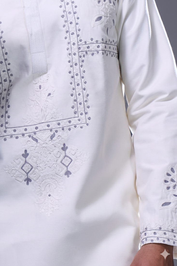 | Product Name | Off White Threadwork Kurta Patiala Set For Men | |