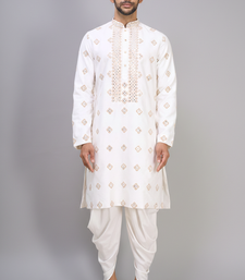 Men’s off white silk embroidered kurta with patiala set