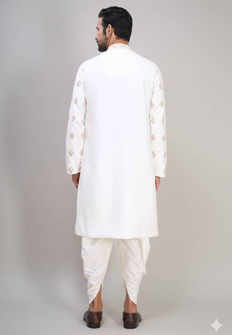| Product Name | Men’s Off White Silk Embroidered Kurta With Patiala Set | |