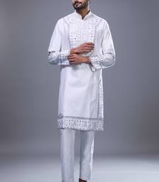 Off white mirror embroidered silk kurta pant set