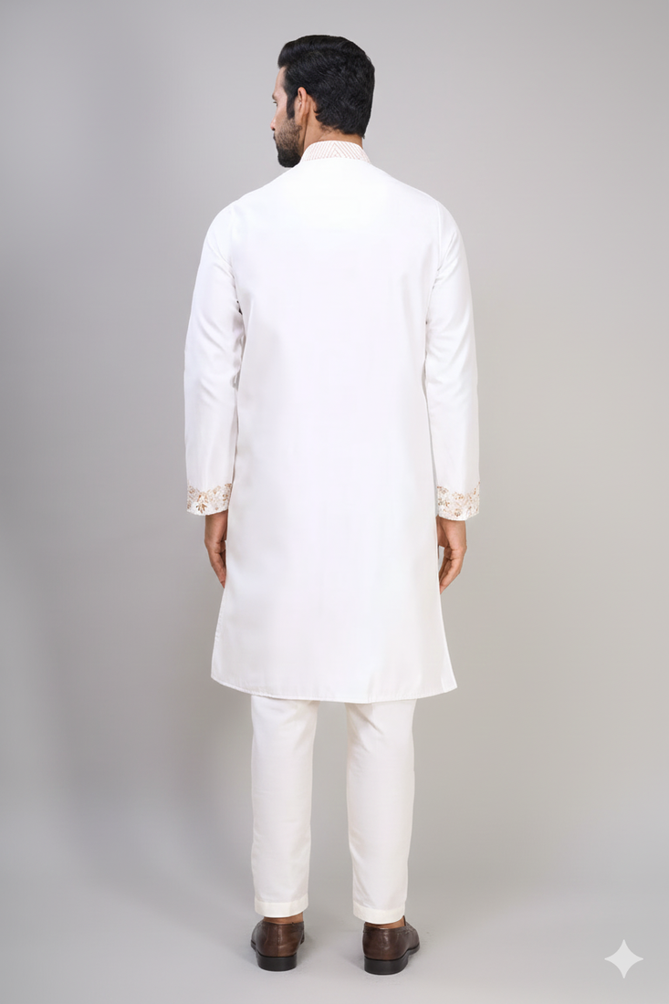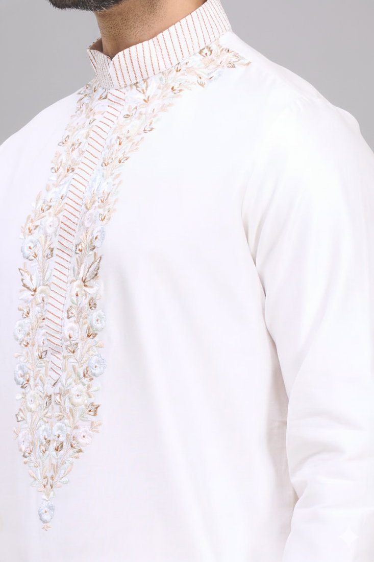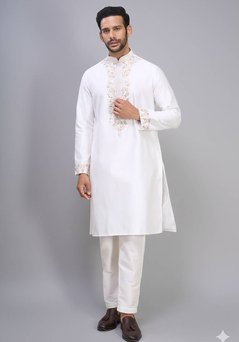 | Product Name | Men’s Off White Silk Kurta Set With Rich Embroidery | |