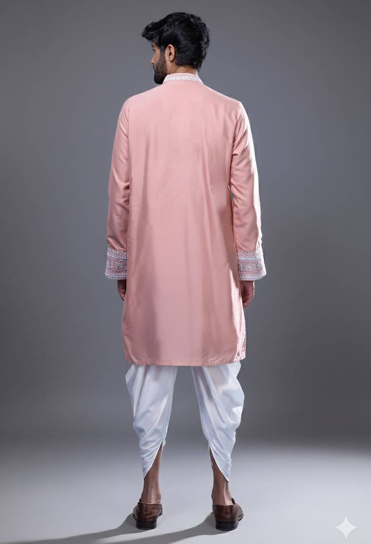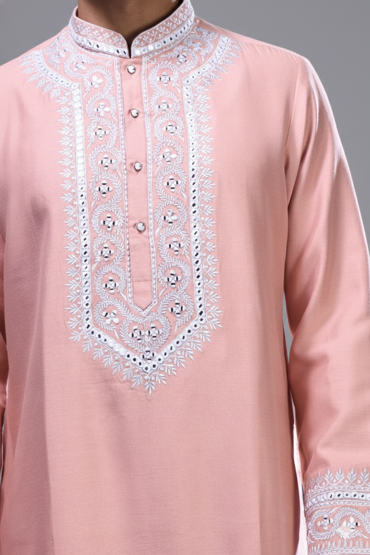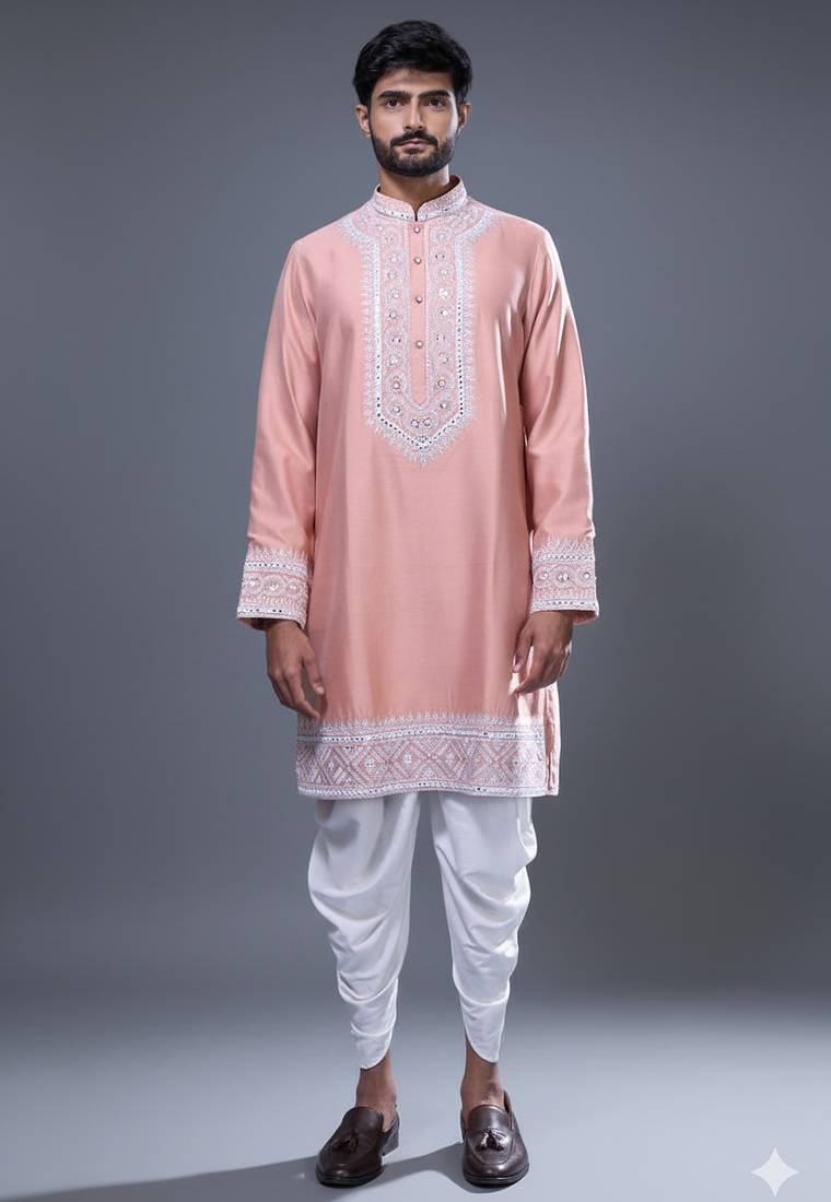 | Product Name | Peach Mirror Embroidered Kurta Patiala Set For Men | |