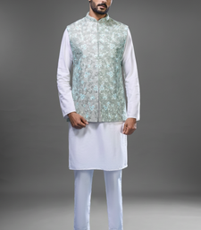 | Product Name | Pista Green Embroidered Silk Nehru Jacket Kurta Set | |