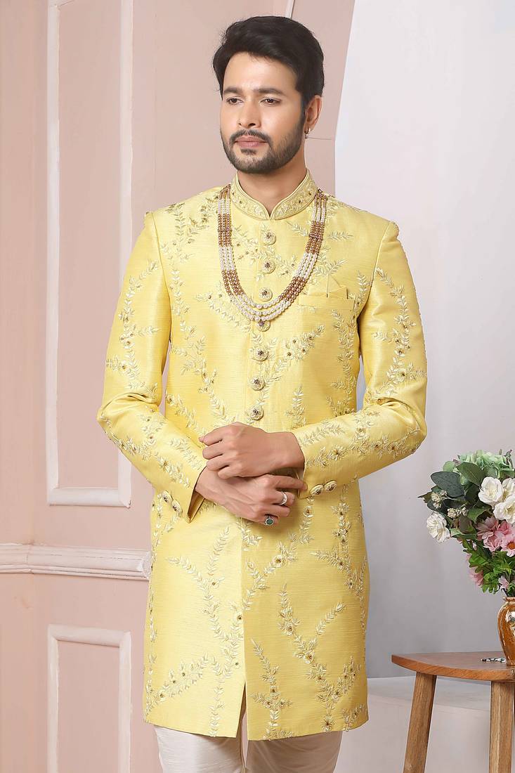 | Product Name | Yellow Embroidered Art Silk Sherwani | |