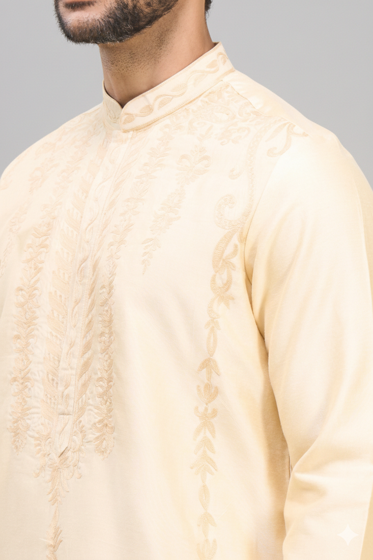 | Product Name | Yellow Embroidered Men’s Silk Kurta Patiala Set | |