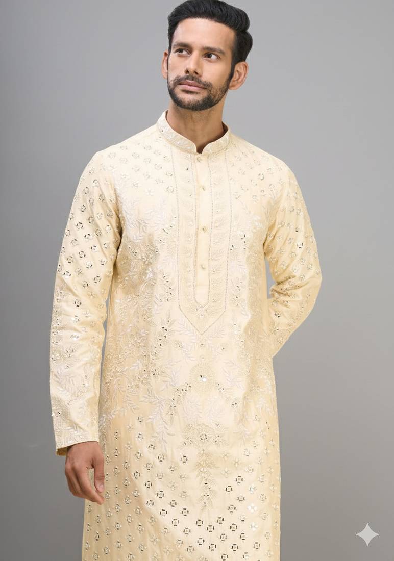 | Product Name | Men’s Yellow Silk Kurta Pant Set With Intricate Embroidery | |