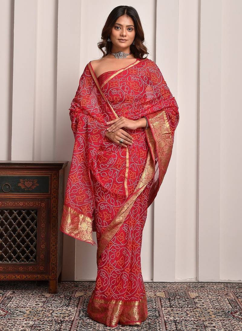 | Product Name | Magenta Pink Designer Bandhani Georgette Saree With Zari Border | |