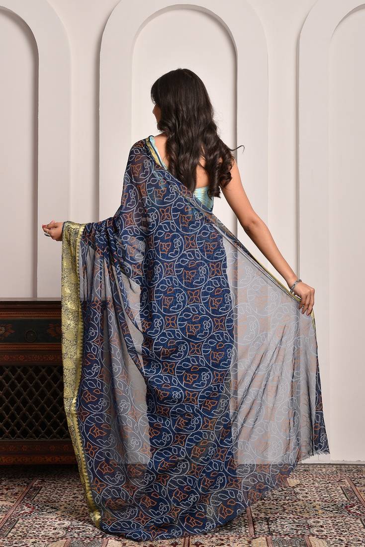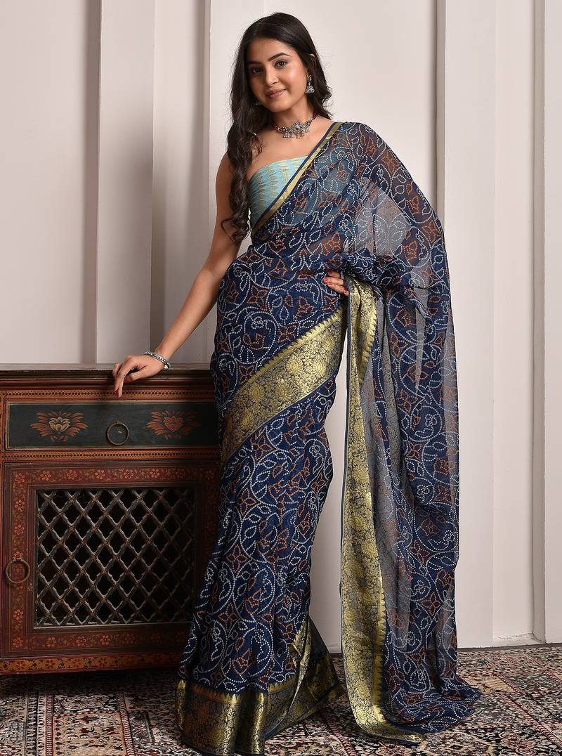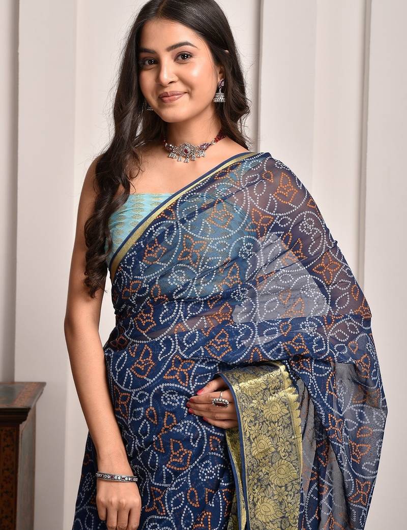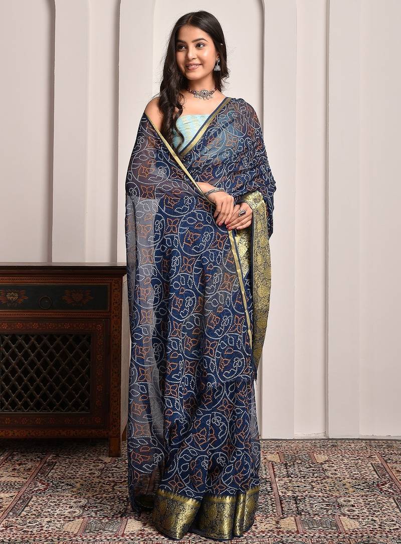 | Product Name | Navy Blue Georgette Saree With Bandhani Print And Zari Border | |