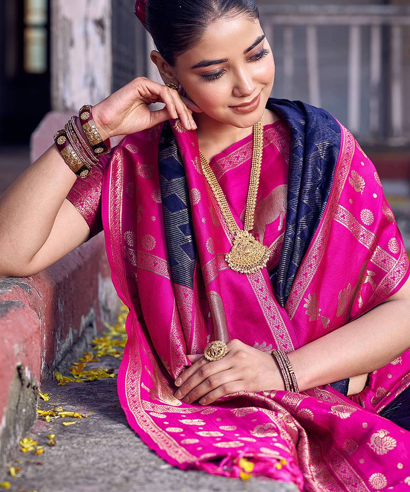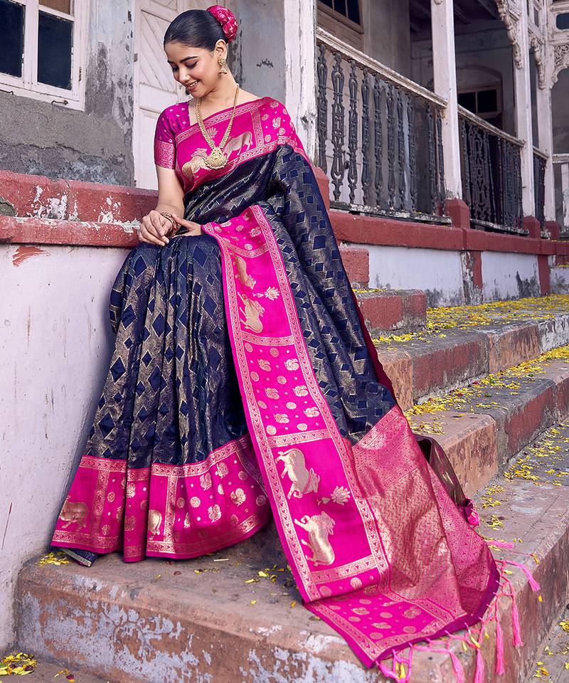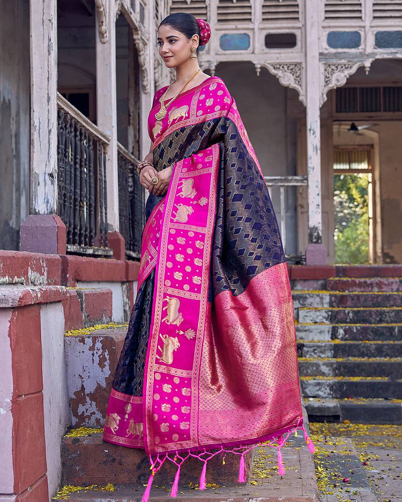 | Product Name | Sutriti Black Soft Silk Saree With Rani Pink Border Ethnic Festive Wedding Saree For Women | |