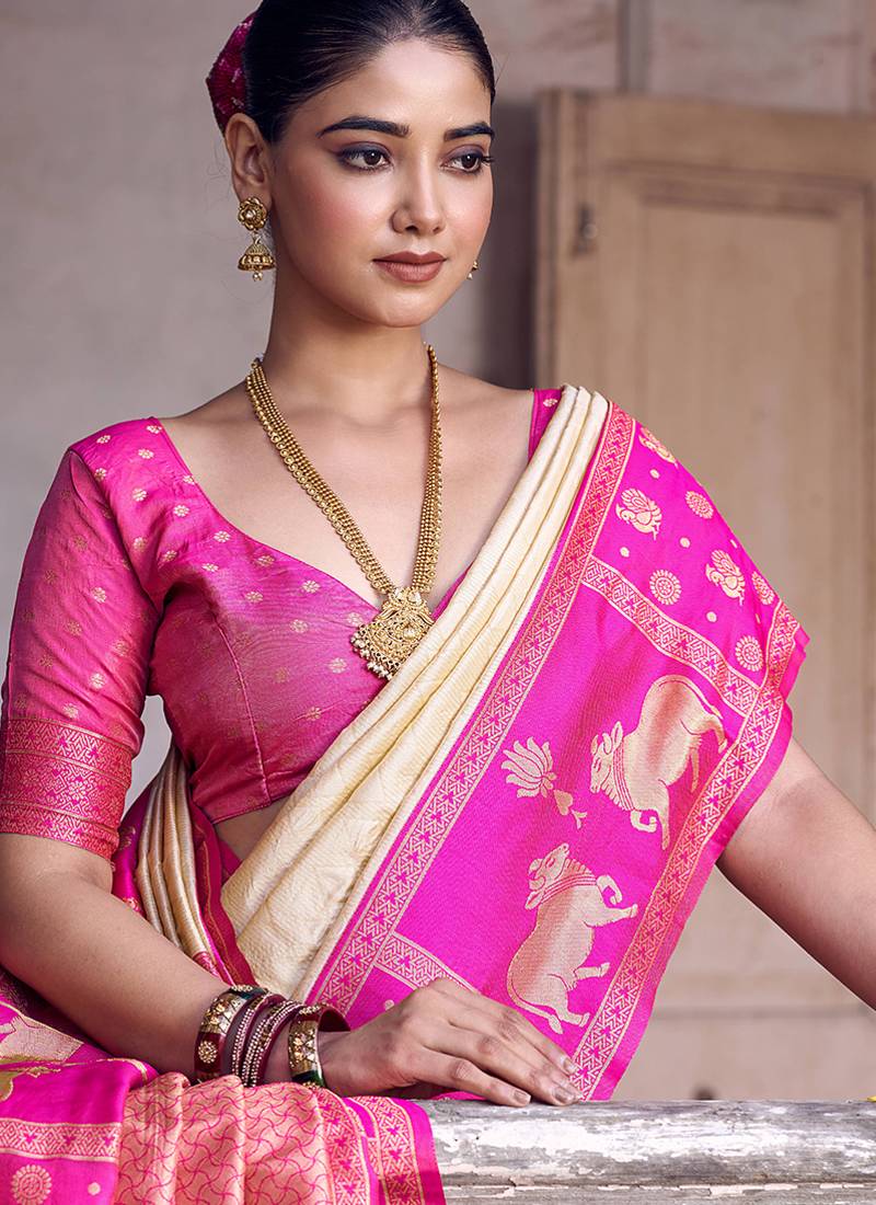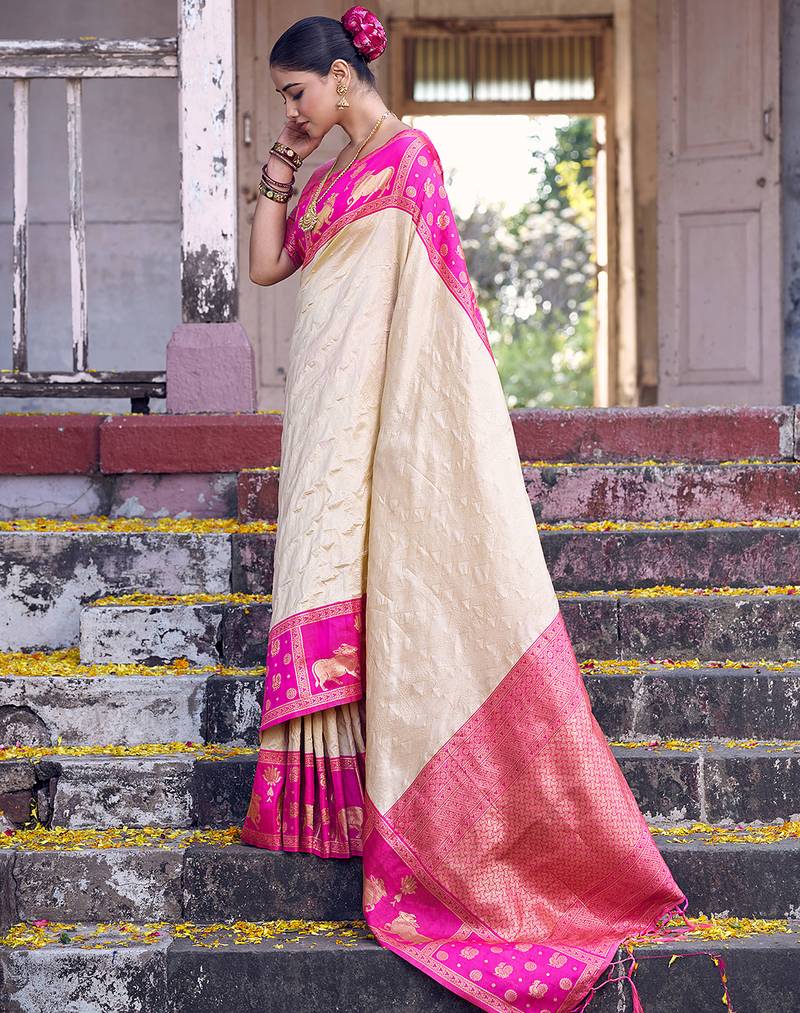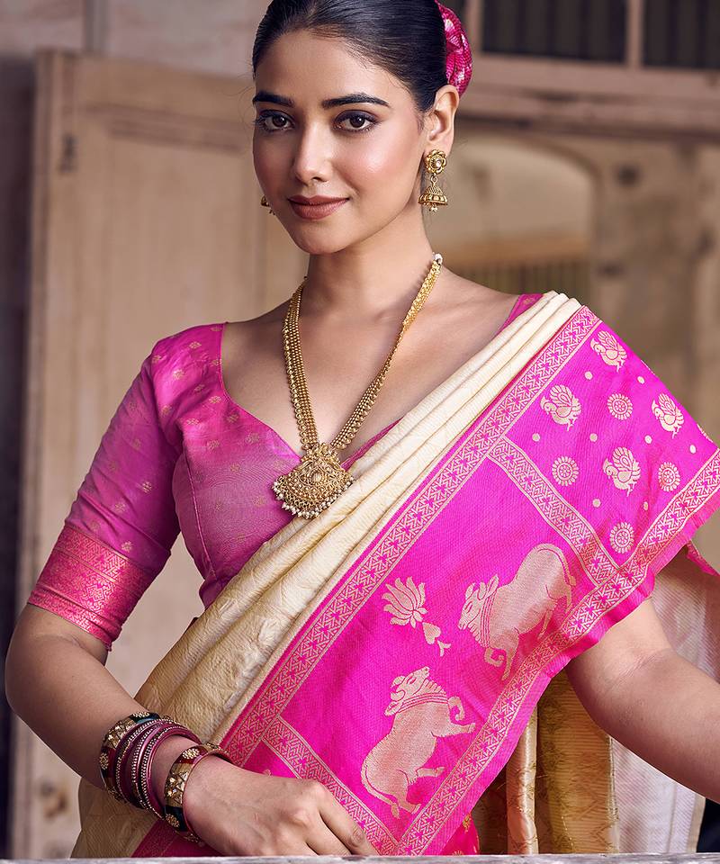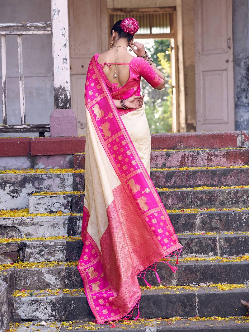 | Product Name | Sutriti Cream Soft Silk Saree With Rani Pink Border Festive Wedding Party Ethnic Saree For Women | |