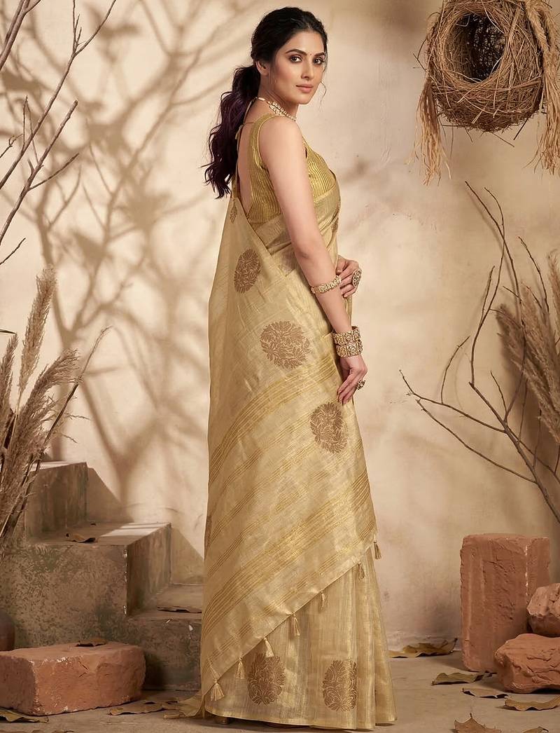 Sutriti cream tissue silk saree for women wedding festive party ethnic wear