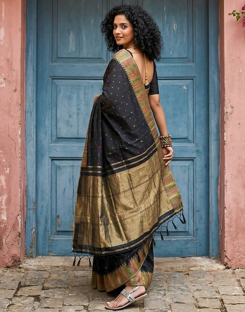 Sutriti designer midnight black & gold woven art silk saree | modern festive wear