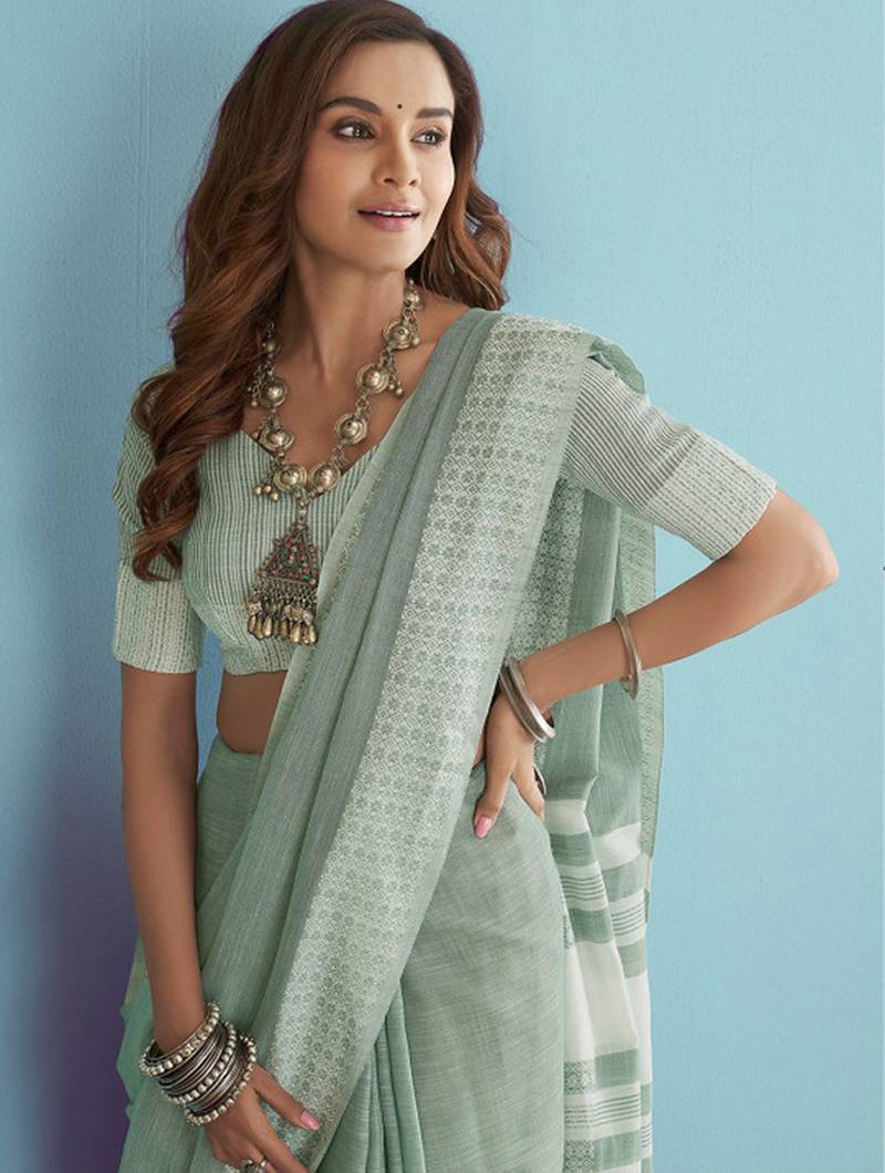 | • | Saree | : | Color- Sea Green / Fabric- Linen |