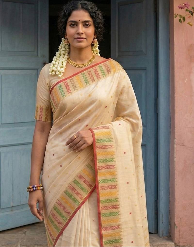 | • | Saree | : | Color- Cream / Fabric- Silk |