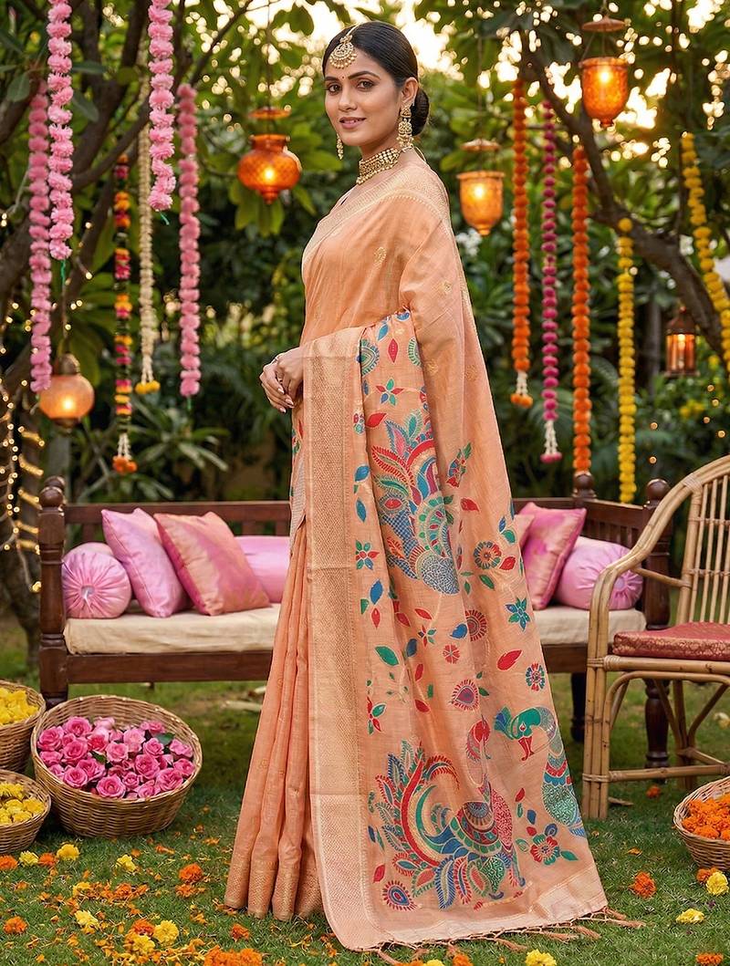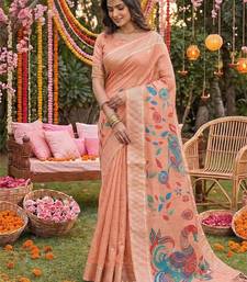 | Product Name | Sutriti Peach Linen Saree For Women Festive Wedding Party Wear Ethnic Designer Saree | |