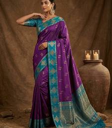 Sutriti purple banarasi soft silk saree for women festive wedding ethnic saree