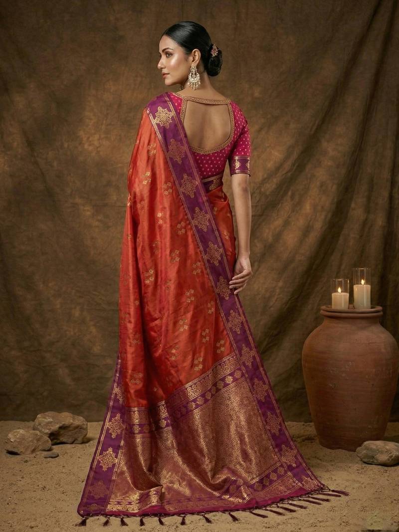 | Product Name | Sutriti Red Orange Banarasi Soft Silk Saree For Women Festive Wedding Ethnic Wear | |