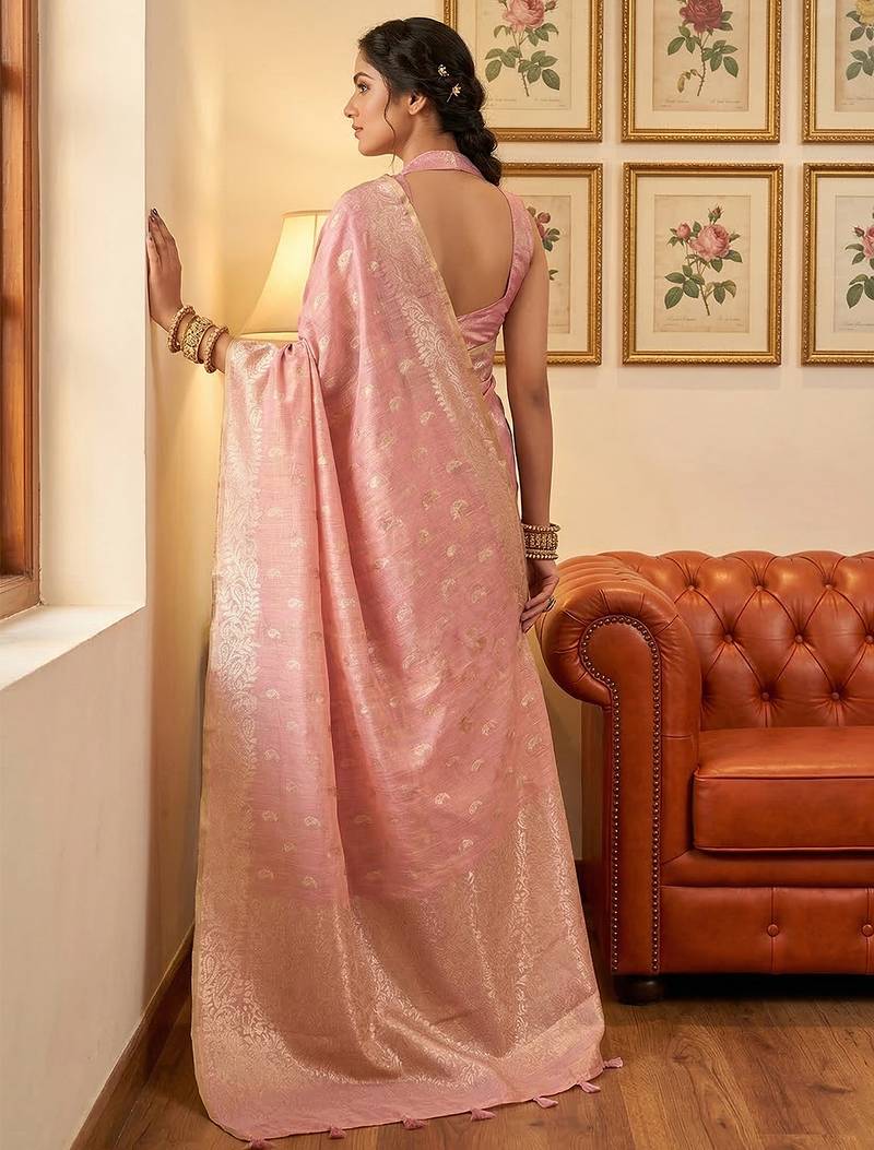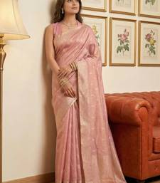 Sutriti rose pink tissue silk saree for women festive wedding party ethnic wear
