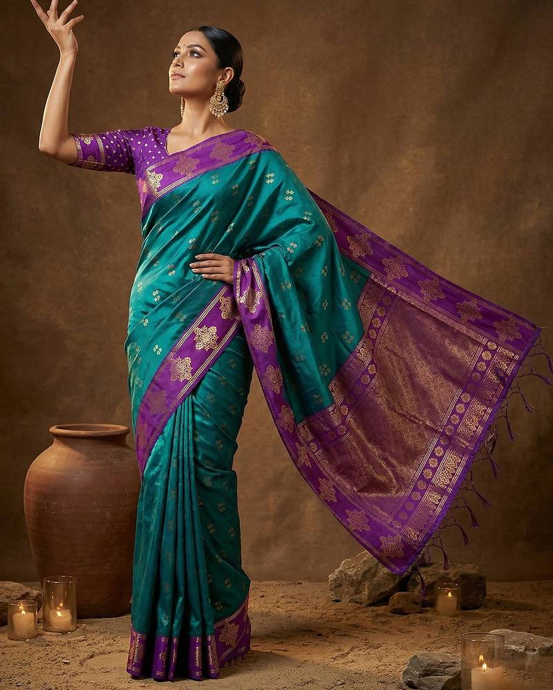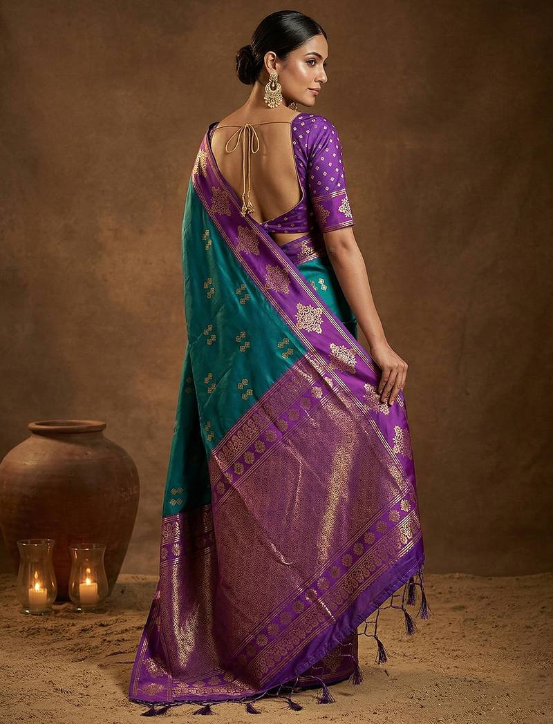 Sutriti teal green banarasi soft silk saree for women wedding festive ethnic wear