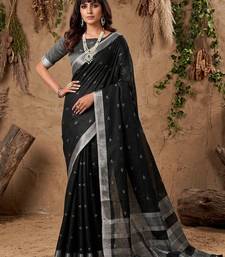 Sutriti women black woven design linen saree with silver zari