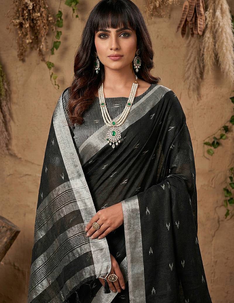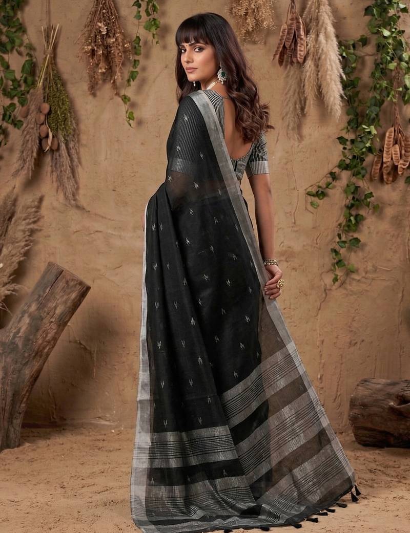 | Product Name | Sutriti Women Black Woven Design Linen Saree With Silver Zari | |