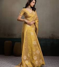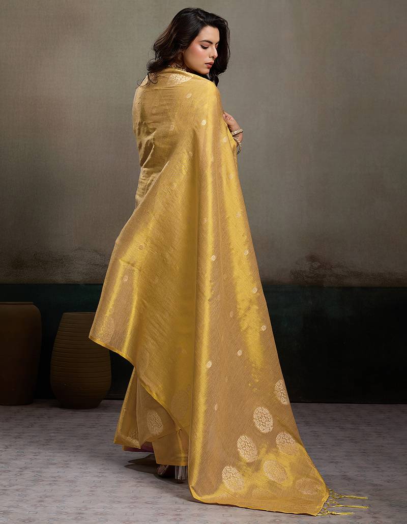 Sutriti women golden beige woven tissue silk saree with mandala motifs