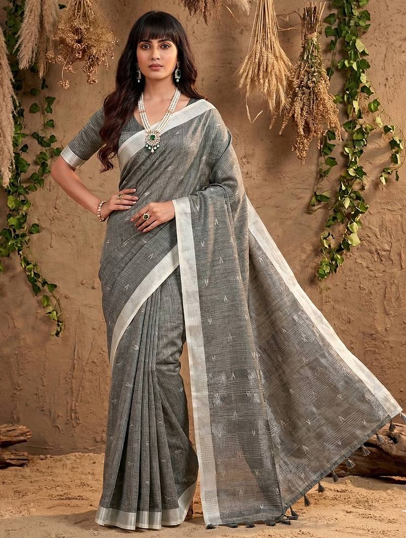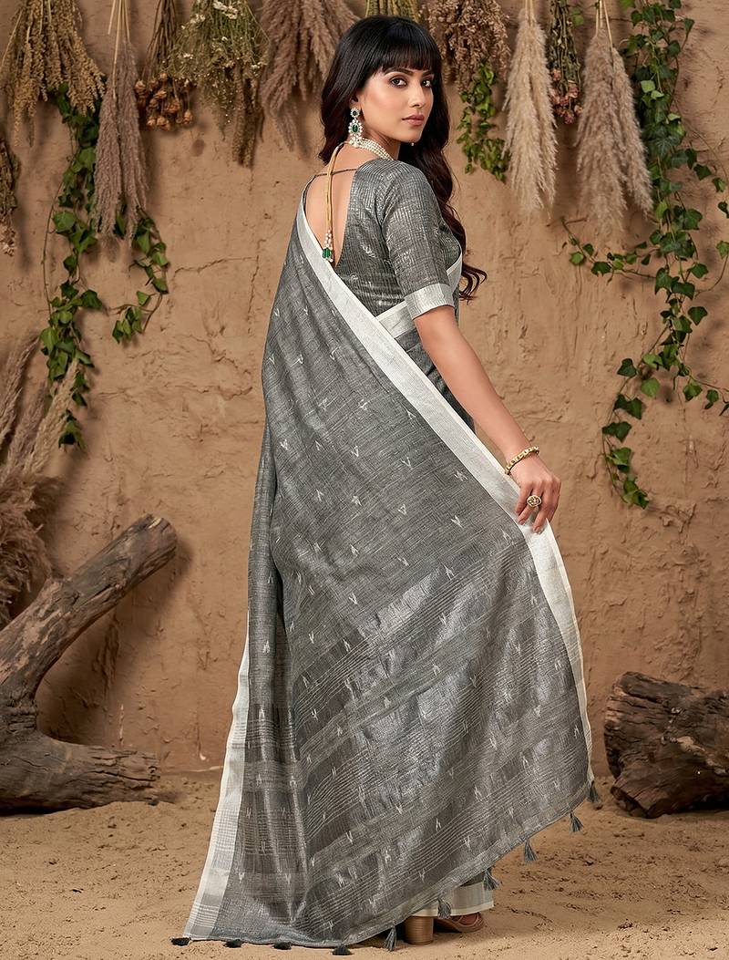| Product Name | Sutriti Women Grey Woven Design Linen Saree With Silver Zari | |