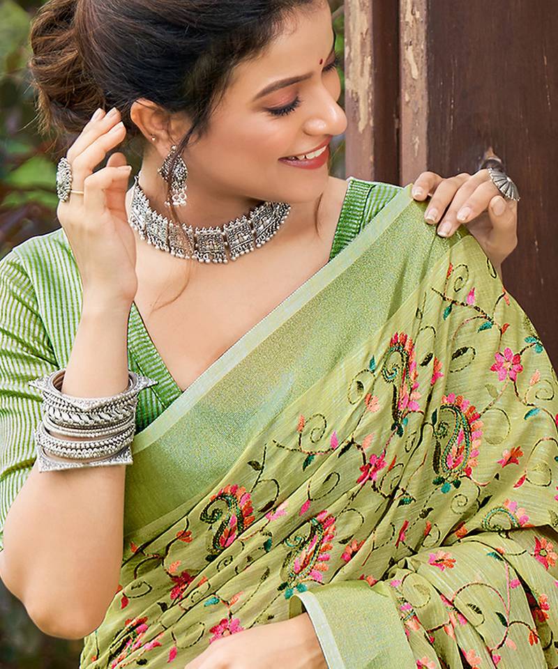 | • | Saree | : | Color- Light Green / Fabric- Linen |