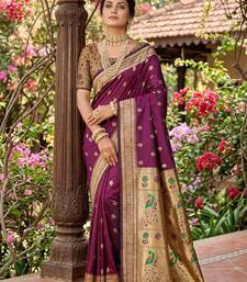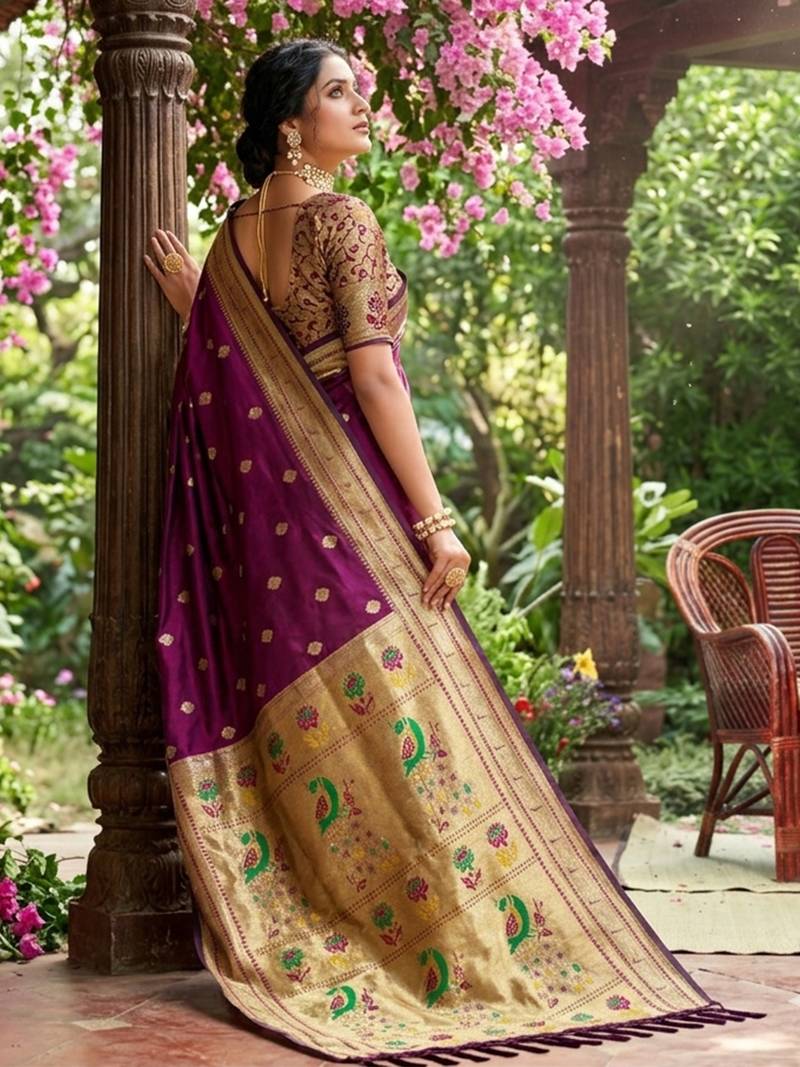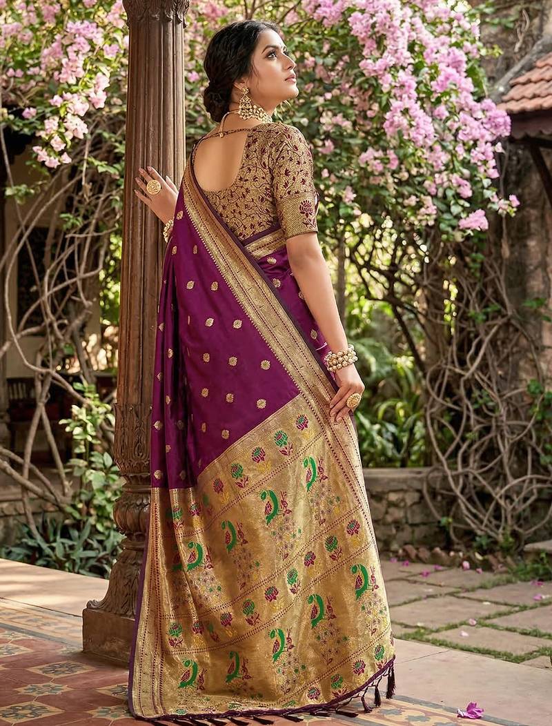 Sutriti women's deep purple paithani soft silk saree for festive party & wedding wear with blouse