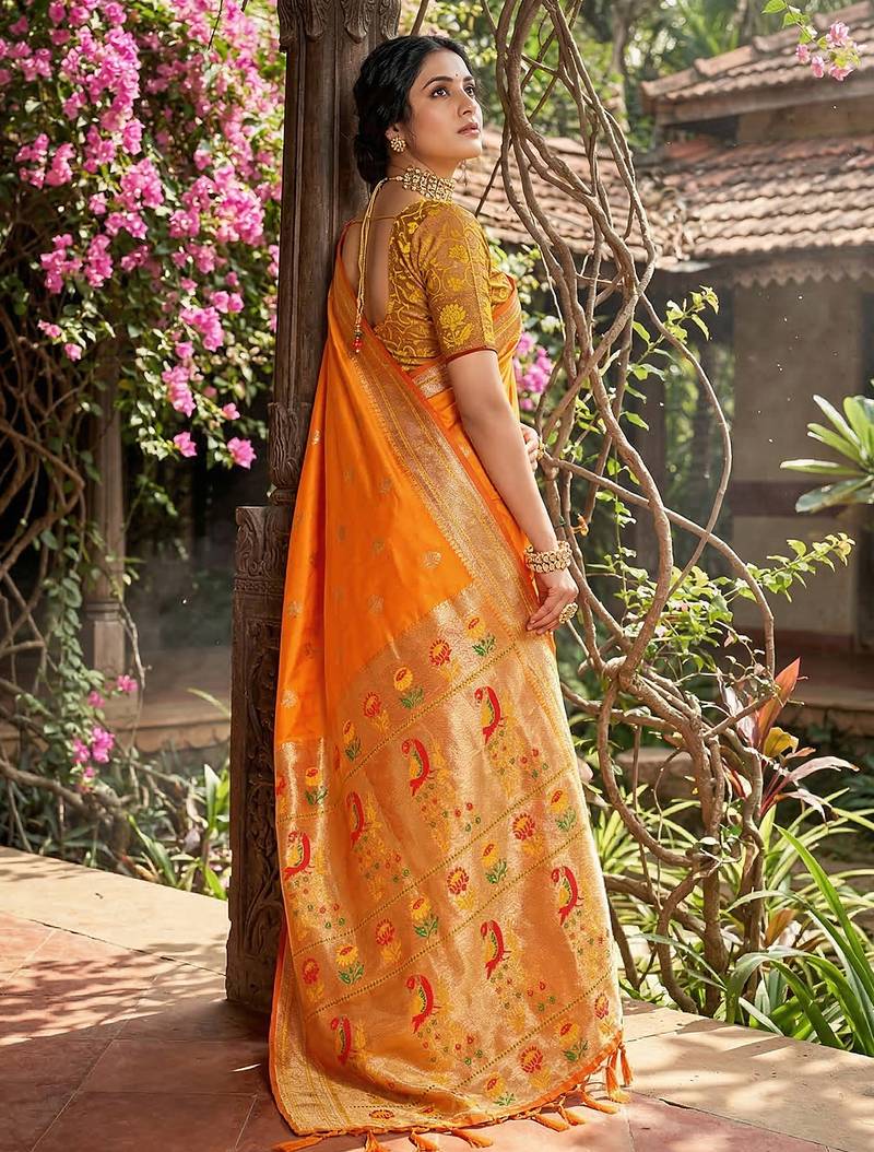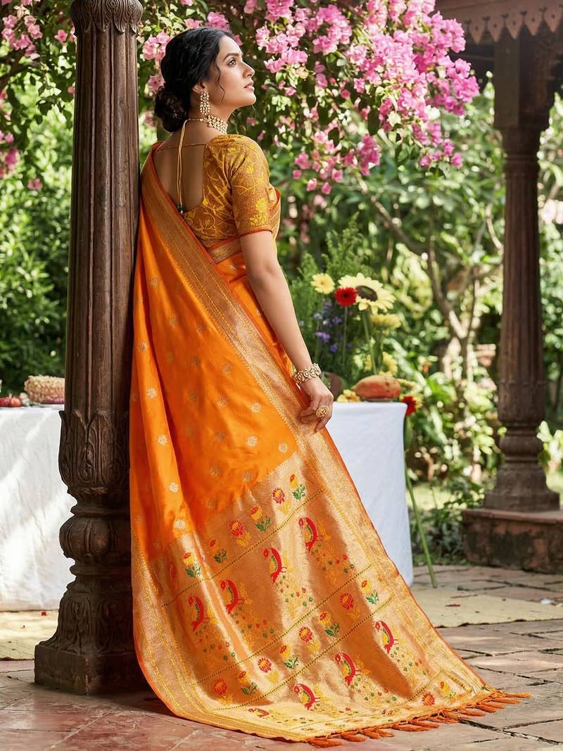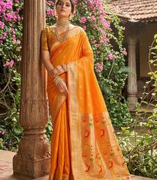 Sutriti women's mustard yellow paithani soft silk saree for festive party & wedding wear with blouse