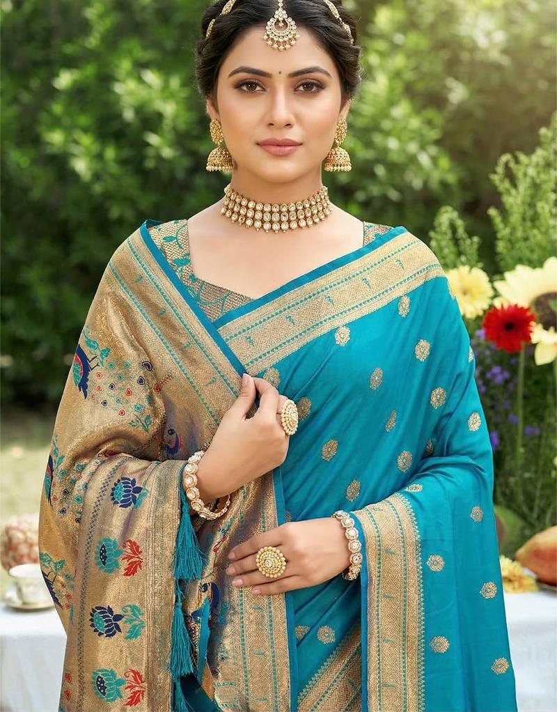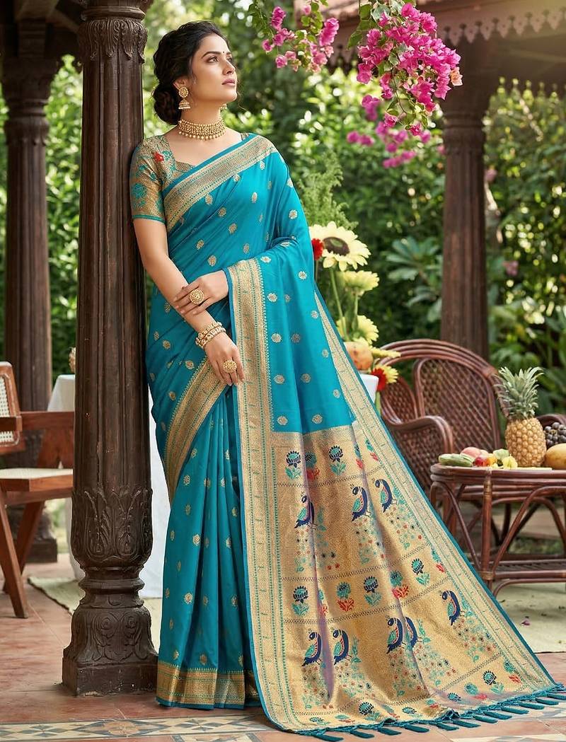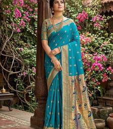 Sutriti women's sky blue paithani soft silk saree for festive party & wedding wear with blouse piece