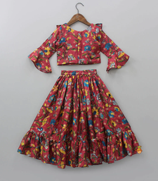 | Product Description | Beautiful Red Floral Printed Lehenga Set Featuring A Trendy Crop Top With Matching Flared Skirt Crafted From Soft And Breathable Fabric, Ensuring All Day Comfort For Kids Stylish Bell Sleeves And Elegant Neckline Add A Modern Ethnic Touch Flared Skirt With Ruffled Hem Enhances Volume And Gives A Graceful Twirl Effect Perfect Choice For Festive Occasions, Weddings, And Party Wear Outfits |
