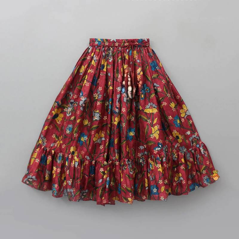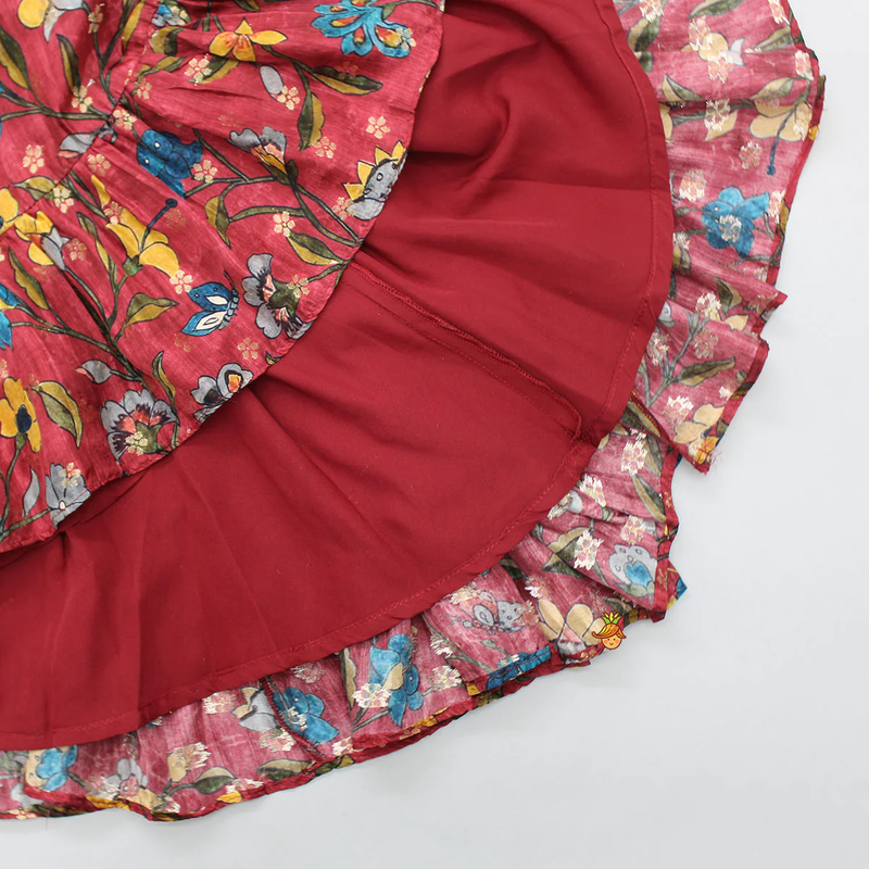 | Product Name | Red Floral Print Cotton Flared Ruffle Lehenga Choli Set | |