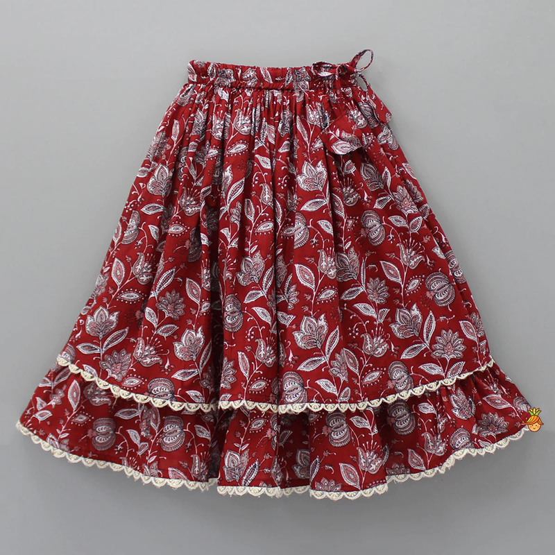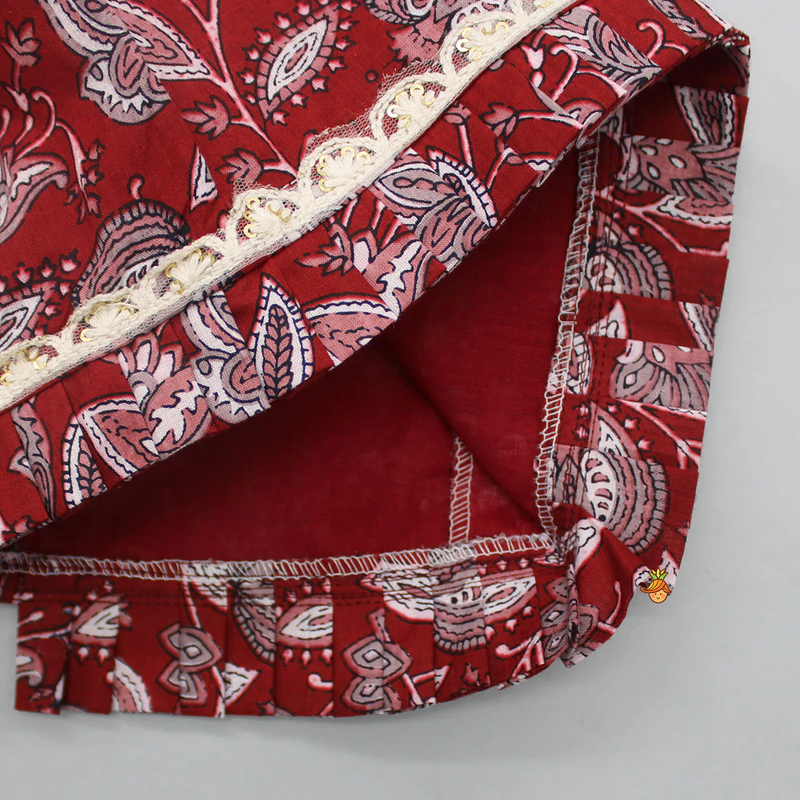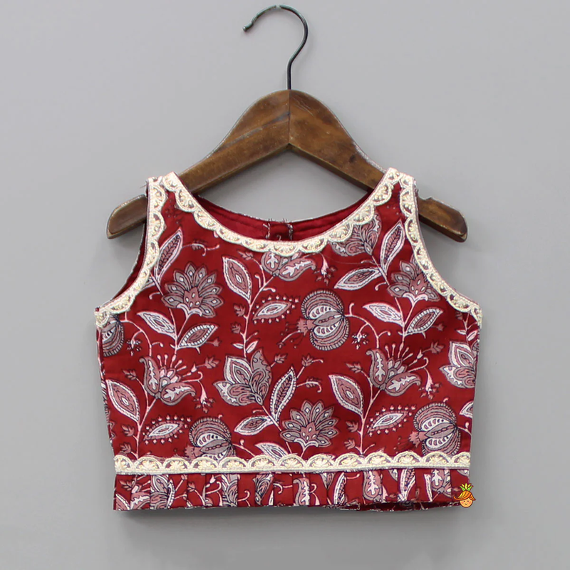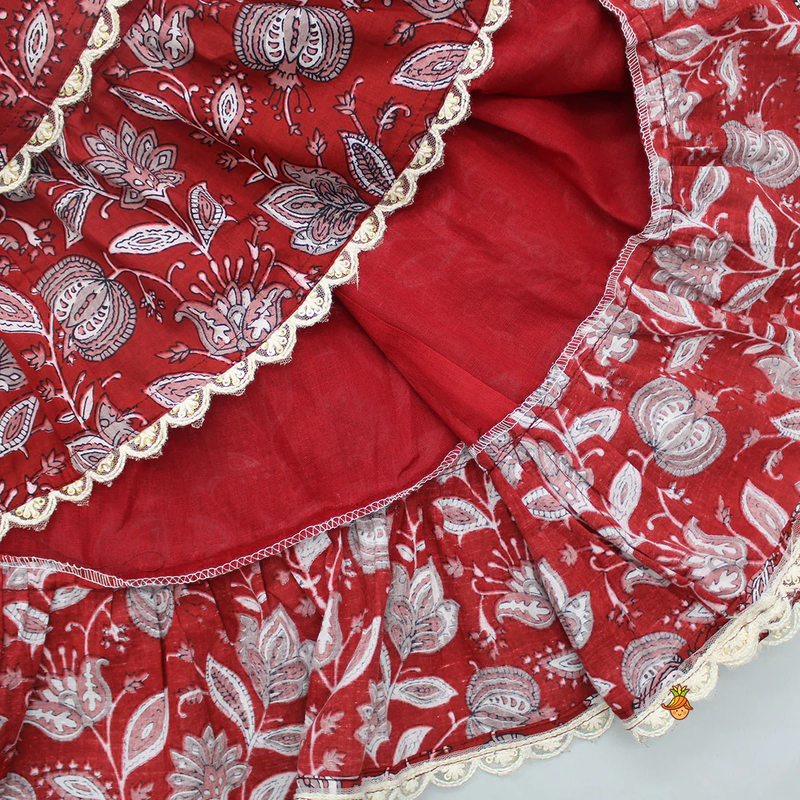 | Product Name | Red & White Floral Print With Lace Border Detailing Sleeveless Crop Top Flared Lehenga Girls Ethnic Kids Lehenga Choli | |