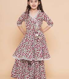 | Product Name | White Red Floral With Green Sleeves Likely Cotton Angrakha Style Top Kurti With Sharara / Lehenga Style Bottom Set | |