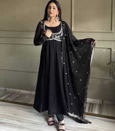 Black color faux georgette heavy embroidery work functional wear long gown stitched