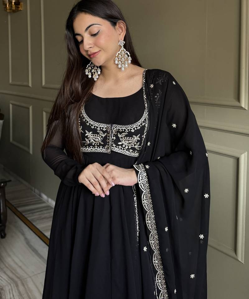 | Product Name | Black Color Faux Georgette Heavy Embroidery Work Functional Wear Long Gown | |