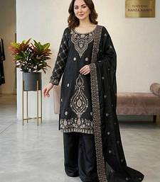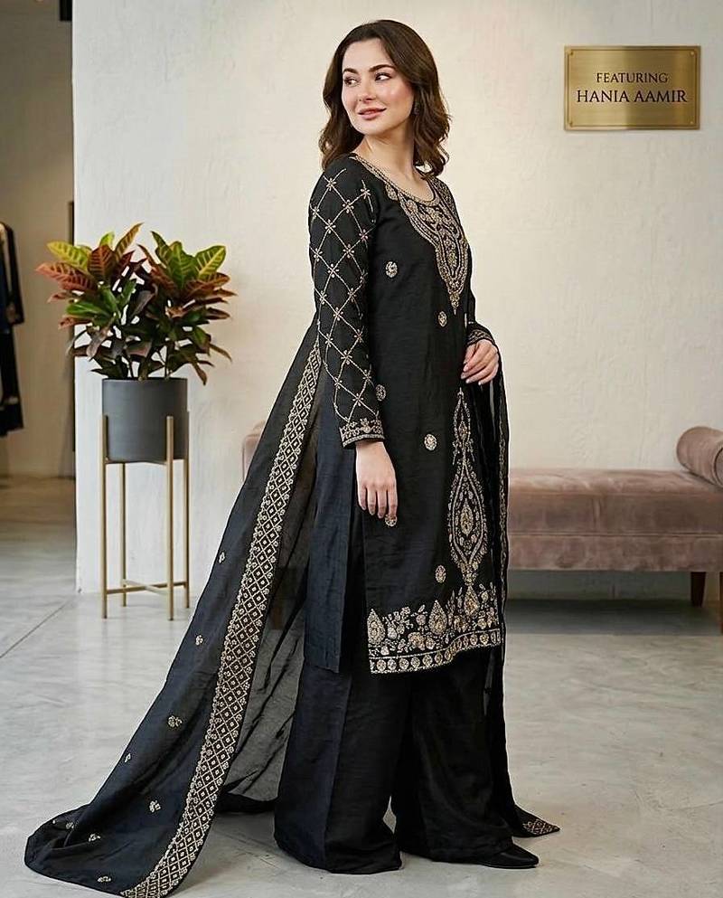 Black color gimmychu silk embroidery work wedding wear salwar suit stitched