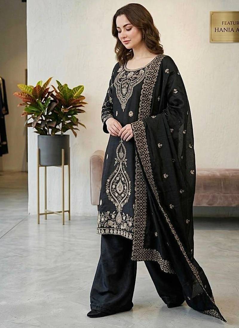 | Product Name | Black Color Gimmychu Silk Embroidery Work Wedding Wear Salwar Suit | |