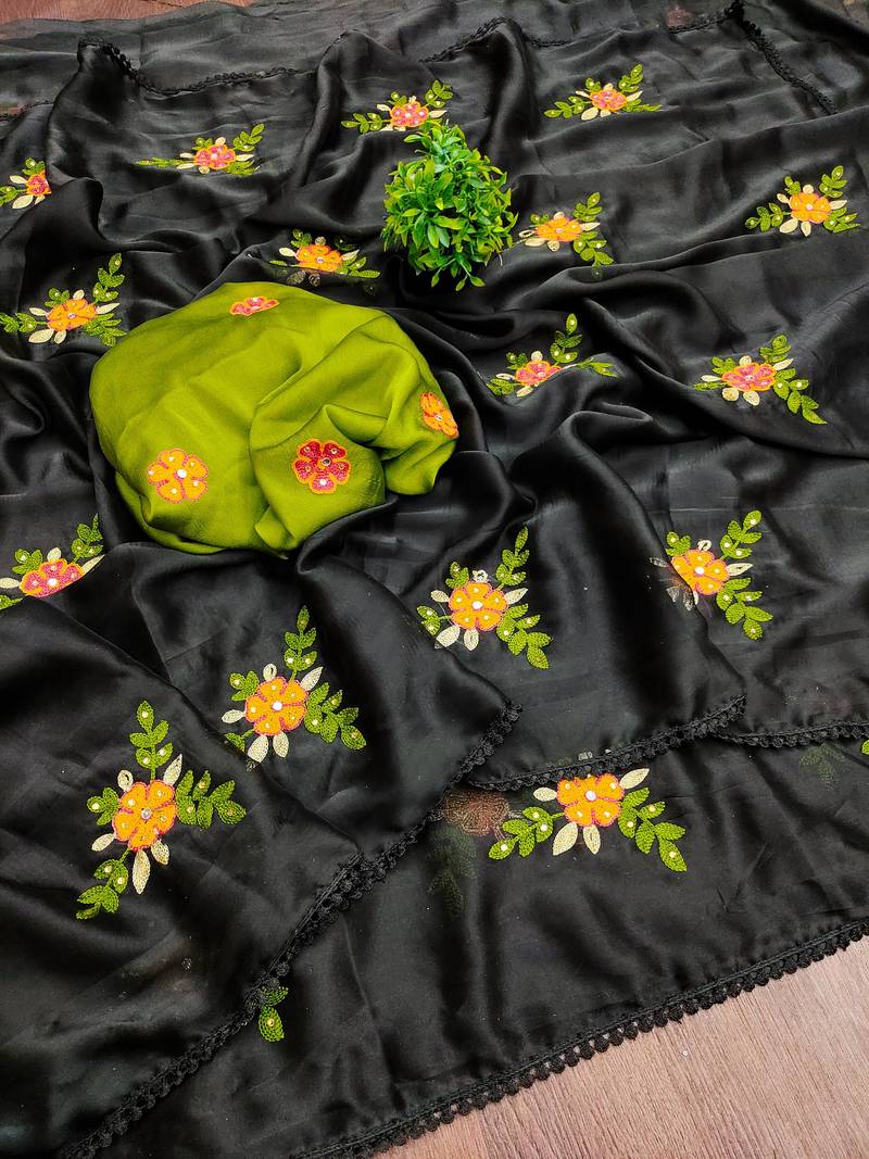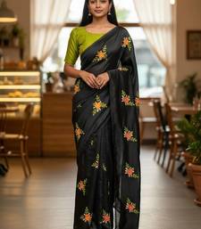 Black rangoli silk embroidery work party wear designer saree