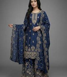 Blue color gymmi silk embroidery work wedding wear sharara set stitched