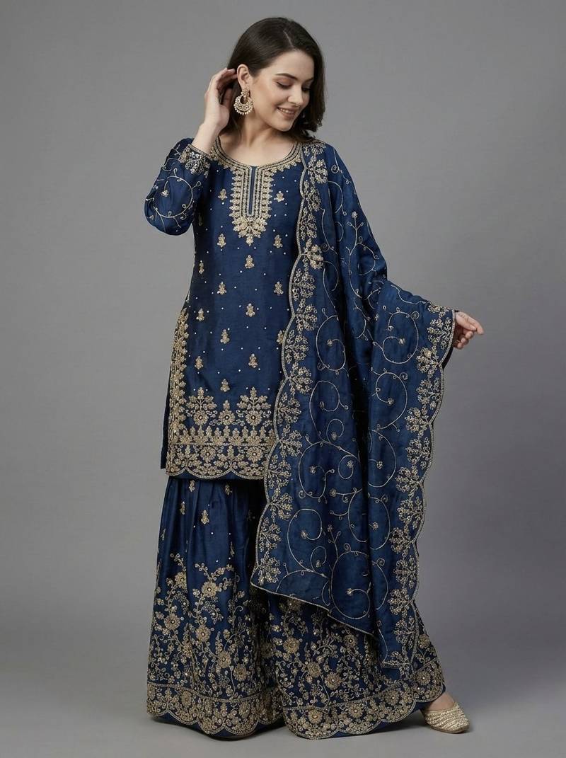 | Product Name | Blue Color Gymmi Silk Embroidery Work Wedding Wear Sharara Set | |