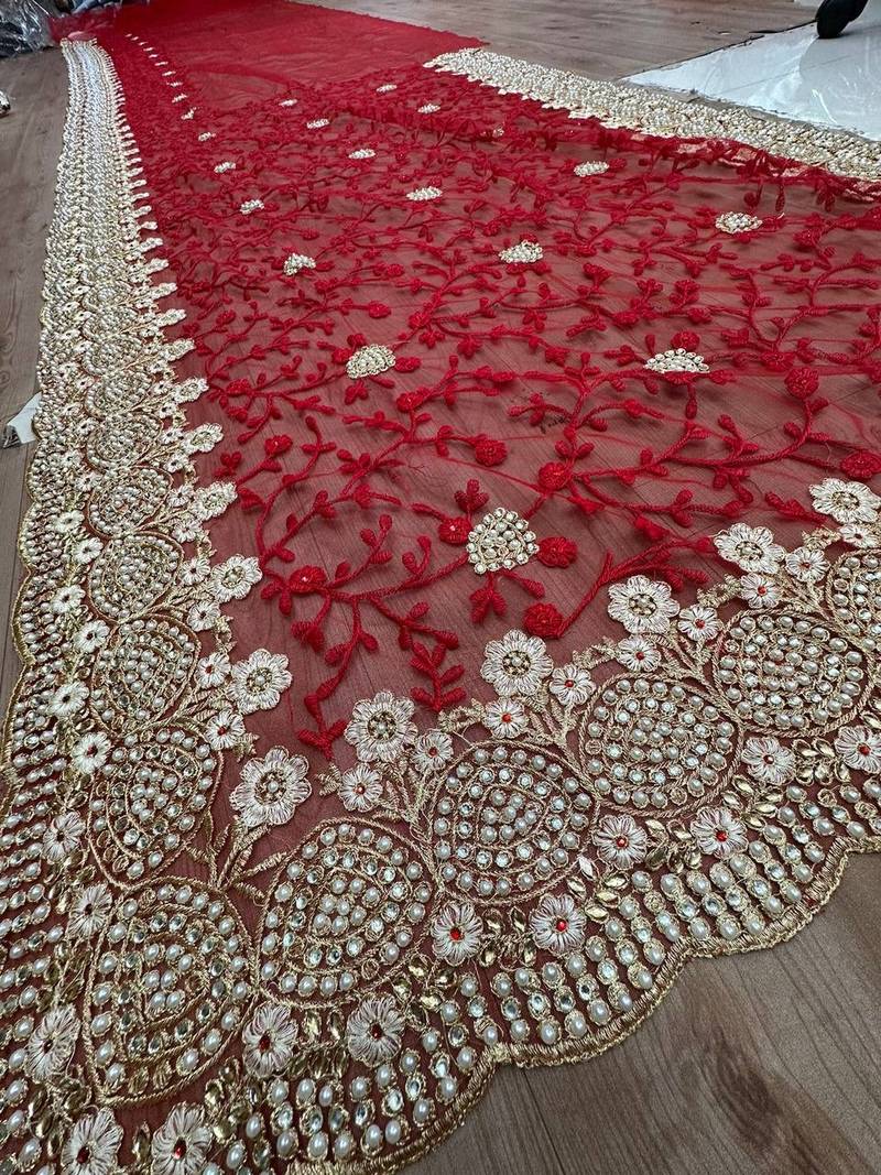 | • | Saree | : | Color- Red / Fabric- Net |