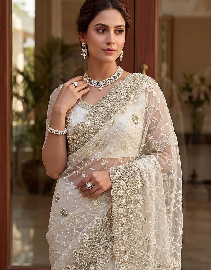 | • | Saree | : | Color- White / Fabric- Net |